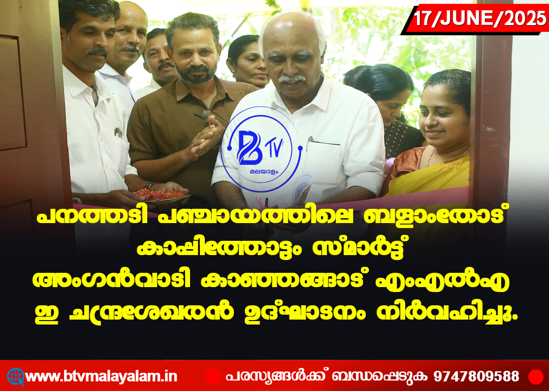 ബളാംതോട് – പരപ്പ അഡീഷണൽ ഐസിഡിഎസിന്റെ കീഴിൽ ബളാംതോട് കാപ്പിത്തോട്ടത്തിൽ നിർമ്മിച്ച സ്മാർട്ട് അംഗൻവാടിയുടെ കാഞ്ഞങ്ങാട് എംഎൽഎ ഇ ചന്ദ്രശേഖരൻ ഉദ്ഘാടനം നിർവഹിച്ചു. പനത്തടി ഗ്രാമപഞ്ചായത്ത് പ്രസിഡണ്ട്…