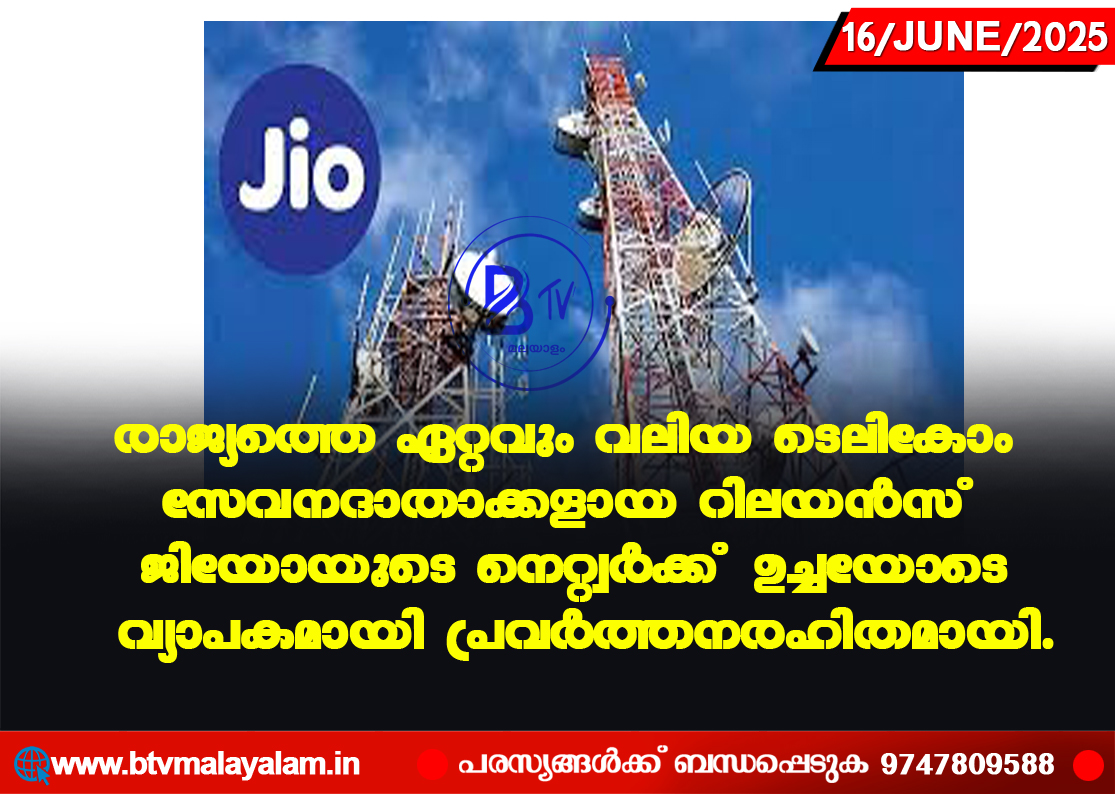 രാജ്യത്തെ ഏറ്റവും വലിയ ടെലികോം സേവനദാതാക്കളായ റിലയൻസ് ജിയോയുടെ നെറ്റ്വർക്ക് ഉച്ചയോടെ വ്യാപകമായി പ്രവർത്തനരഹിതമായി. കേരളം ഉൾപ്പെടെയുള്ള നിരവധി സംസ്ഥാനങ്ങളിലെ ഉപയോക്താക്കൾക്ക് മൊബൈൽ നെറ്റ്വർക്ക്, ഇന്റർനെറ്റ് കണക്റ്റിവിറ്റി,…