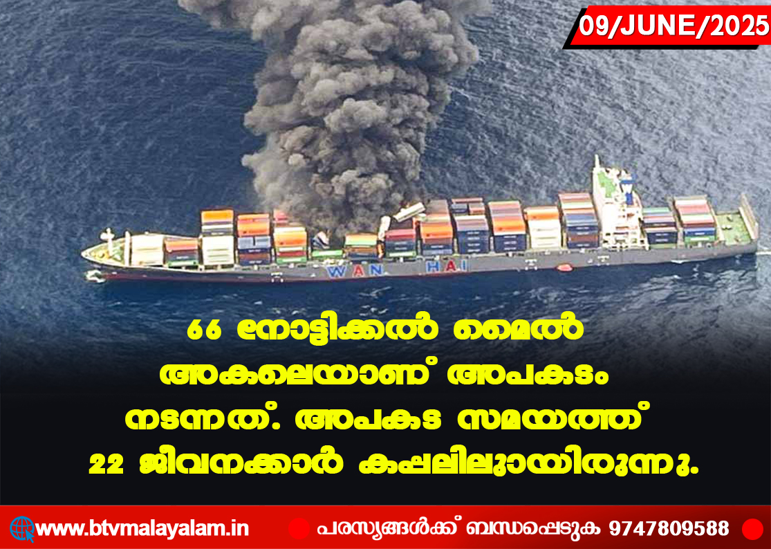 അറബിക്കടലിൽ കേരള തീരത്തിനടുത്ത് വച്ച് തീപിടിച്ചത് സിംഗപ്പൂരിൽ രജിസ്റ്റർ ചെയ്ത വാൻ ഹായ് 503 കപ്പലിന്. 20 വർഷം പഴക്കമുള്ള കണ്ടെയ്നർ കപ്പലാണിത്. കൊളംബോയിൽ നിന്ന് മദർ…