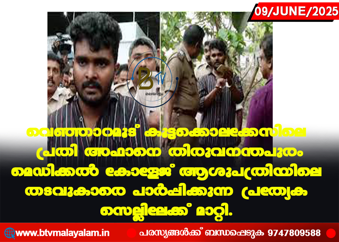 ജയിലിൽ ജീവനൊടുക്കാനുള്ള ശ്രമത്തിനിടെ ഗുരുതരമായി പരിക്കേറ്റ് ചികിത്സയിലായിരുന്ന അഫാന്റെ ആരോഗ്യനിലയിൽ കാര്യമായ പുരോഗതിയുണ്ടായതിനെ തുടർന്നാണ് ഈ നടപടി. കഴിഞ്ഞ ആഴ്ചയോടെ അഫാനെ വെന്റിലേറ്ററിൽ നിന്ന് മാറ്റുകയും അപകടനില…