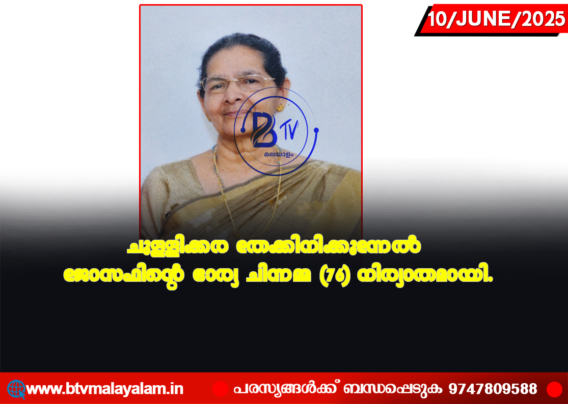 രാജപുരം: ചുള്ളിക്കര തേക്കിനിക്കുന്നേൽ ജോസഫിൻ്റെ ഭാര്യ ചിന്നമ്മ (76) നിര്യാതമായി. ചേറ്റുകല്ലിലെ ഭവനത്തിൽ കൊണ്ട് വരുകയും തുടർന്ന് വൈകിട്ട് 3 മണിക്ക് മ്യതസംസ്കാര ചടങ്ങുകൾക്ക് ശേഷം ചുള്ളിക്കര…